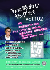 「ちょっと昭和なヤングたちvol.102」 【出演】 ロケット団 ねづっち 与座よしあき 阿曽山大噴火 はらっぱソワレ 安心安全 蒲田キック・パンチ MC:井川修司(イワイガワ)