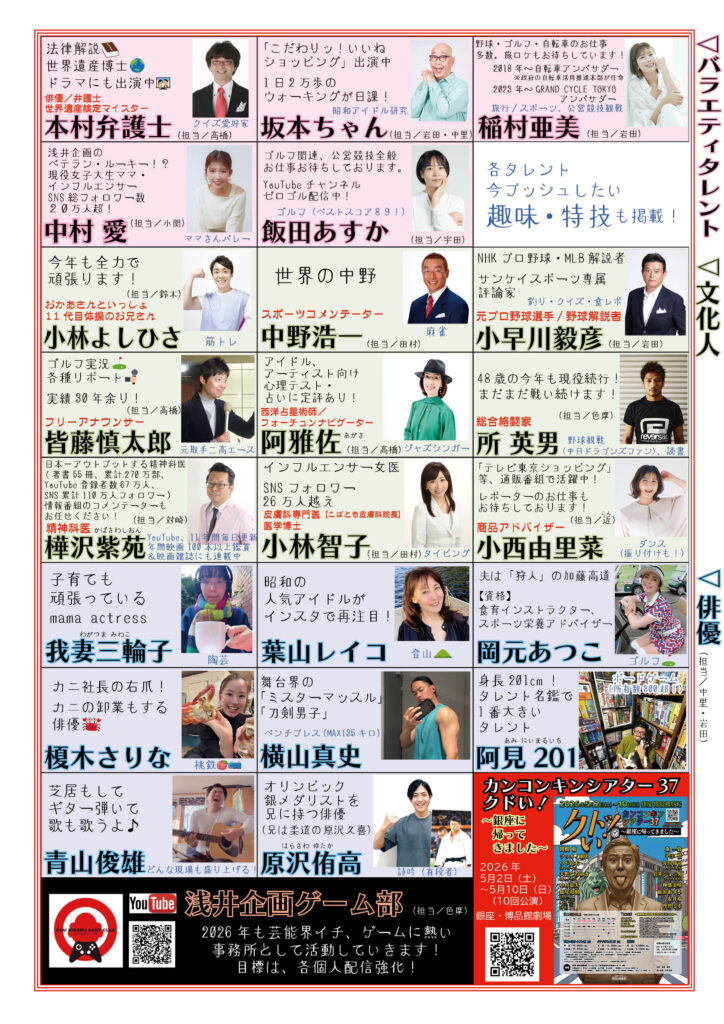 2026年、浅井企画タレントのますますの活躍にご期待ください!