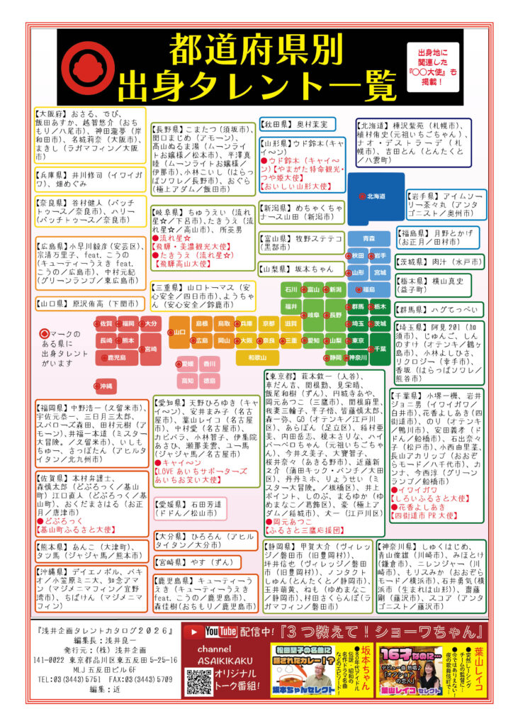 業界関係者にのみ発行され配布されている「浅井企画タレントカタログ 2026」が、WEB上でもご覧いただけます。